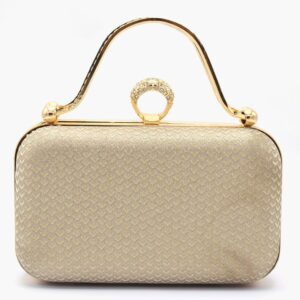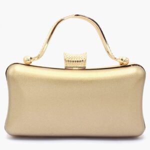 Elegant Golden Color Artificial Leather Bridal Clutch