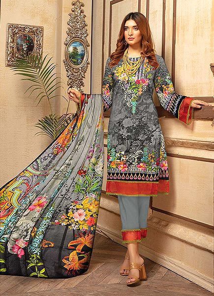 Digital Printed Linen 3 Pcs Unstitched Suit V4