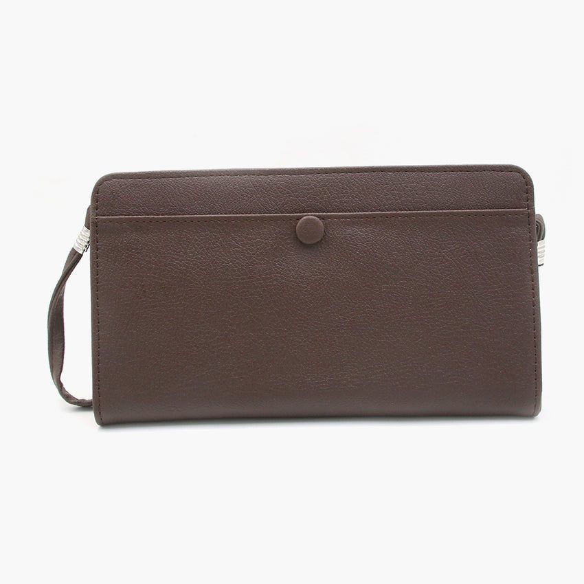 Elegant Dark Brown Color Artificial Leather Women’s Clutch
