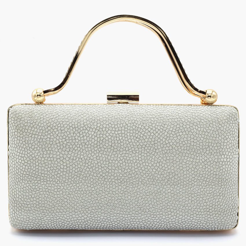 Elegant Silver Color Artificial Leather Bridal Clutch
