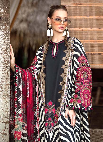 Introducing the Maria B Embroidered Lawn 3 piece unstitched ensemble, a testament to timeless elegance and contemporary charm. The printed lawn front is adorned with a fully heavy embroidered spengle neckline exuding sophistication and intricate detailing. The back and sleeves feature printed lawn fabric, ensuring comfort without compromising style. The sleeves are accentuated with heavy embroidered spengle work bunches adding a touch of glamour to the ensemble. Accompanied by a chiffon printed dupatta that enhances its allure with a delicate finish, this outfit is effortlessly chic. Complete the look with a plain cambric trouser for a balanced and refined appearance. Ideal for those who appreciate craftsmanship and modern aesthetics, the Maria B Embroidered Lawn ensemble promises to elevate your wardrobe with its impeccable design and luxurious feel.