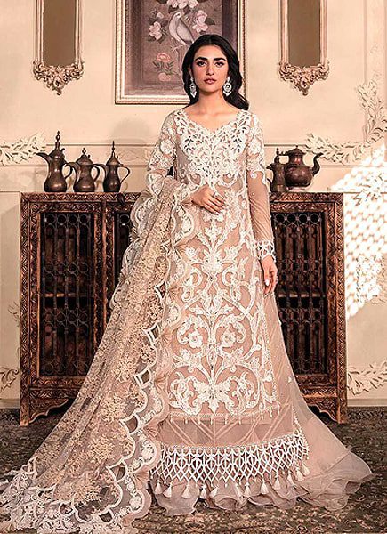 Introducing the epitome of elegance and craftsmanship, the Maria B Embroidered Organza 3 Piece Unstitched Suit is a masterpiece designed to captivate. The ensemble features an organza fully heavy embroidered spangle work front body meticulously adorned with hand embellished adha work showcasing exquisite detailing and finesse. Complementing the front body is an organza plain back offering a graceful balance to the intricate embroidery. The front gherra boasts alternately heavy embroidered spangle work with hand embellished adha work enriched further by a heavy embroidered spangle work daman border with cut work and fancy tulsas attached adding a regal touch. The ensemble includes organza fully embroidered spangle work side panels enhancing the ensemble’s luxurious appeal. The organza plain back features a heavy embroidered spangle work back daman border with intricate cut work, ensuring elegance from every angle. The highlight of this ensemble is the organza fully heavy embroidered spangle work dupatta featuring stunning 3D flower attachments and cut work along with heavy embroidered spangle work pallou borders on both sides exuding opulence and sophistication. Completing the look is a dyed satin silk trouser offering comfort and complementing the ensemble’s luxurious appeal. Ideal for special occasions, the Maria B Embroidered Organza 3 Piece Unstitched Suit promises to make a statement with its timeless beauty and impeccable craftsmanship, ensuring you stand out with grace and style.