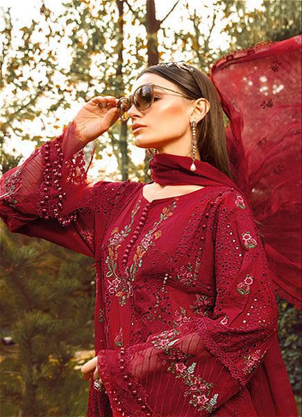 Discover the elegance of the Maria B Lawn Collection with this 3 Piece Unstitched Suit designed for the discerning fashionista. This stunning set includes a pure lawn trouser, a soft chiffon dupatta and a pure lawn printed back and sleeves for ultimate comfort and style. The printed lawn shirt comes with a beautifully detailed neck patch offering a touch of sophistication and unique charm. Perfect for any occasion, this unstitched suit allows you to create a custom fit that embodies grace and contemporary fashion.