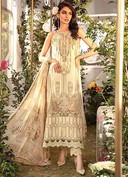 Introducing the Maria B Lawn Embroidery 3Pcs Unstitched Collection, a masterpiece of elegance and sophistication. Elevate your style with this exquisite ensemble meticulously designed to captivate attention. The printed lawn front features a stunning heavy embroidered spangle work neckline, adding a touch of glamour to your look. The heavy embroidered daman border further enhances the ensemble’s allure ensuring you make a statement wherever you go. Crafted for comfort without compromising on style, the printed lawn back and sleeves offer a seamless blend of grace and charm. Complete your ensemble with the printed chiffon dupatta, providing a graceful drape and the printed cambric trouser. What sets this ensemble apart is the intricate heavy embroidered scifflie trozer border, adding a contemporary edge to the traditional design. Whether it’s a casual outing or a special occasion, the Maria B Lawn Embroidery 3Pcs Unstitched Collection promises to make you shine with its timeless appeal and impeccable craftsmanship.