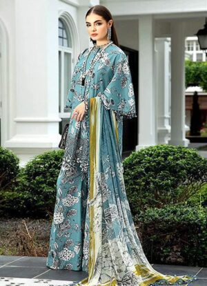 Introducing the Maria B M Print Lawn 3-Piece Unstitched Suit, designed for the fashion-forward individual who appreciates quality and style. The ensemble features a beautifully crafted shirt with a vibrant printed front that captures attention, along with a printed back and coordinating sleeves that provide a polished look. Made from soft, breathable lawn fabric, the shirt promises comfort for all-day wear. The printed cambric trouser offers a flattering fit and complements the shirt’s intricate designs, while the lightweight printed chiffon dupatta adds a touch of elegance, making it ideal for draping or styling in various ways. Perfect for casual gatherings, festive occasions, or even everyday wear, this unstitched suit provides the versatility to customize your fit and style, ensuring you stand out in any setting. Embrace effortless elegance with this captivating outfit from Maria B.