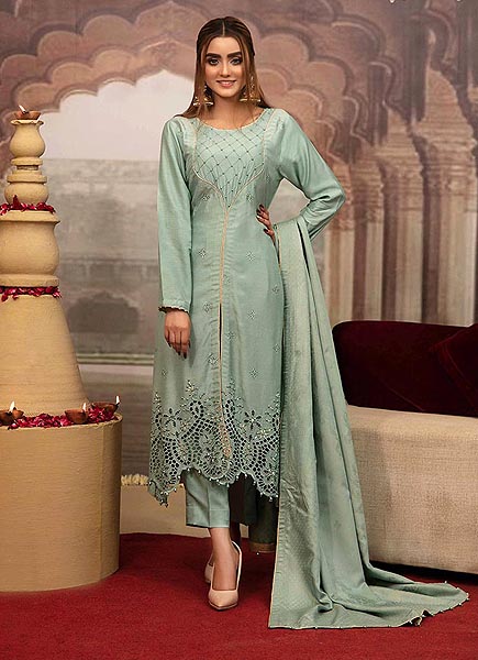 Discover the timeless elegance of SM Chikankari Schiffli 3 Pcs Unstitched Suit, a celebration of the rich heritage of Chikankari craftsmanship. This exquisite ensemble includes an unstitched shirt, trousers and dupatta, each intricately adorned with Schiffli embroidery that adds a touch of sophistication. The breathable fabric ensures comfort, making it ideal for both casual and formal occasions. The delicate threadwork, inspired by traditional Chikankari techniques, reflects an impeccable blend of artistry and cultural heritage. Elevate your style with this versatile and customizable suit, allowing you to embrace the grace of Chikankari embroidery and make a statement at any event. Experience the art of traditional craftsmanship with the SM Chikankari Schiffli 3 Pcs Unstitched Suit, a perfect embodiment of elegance and cultural richness.