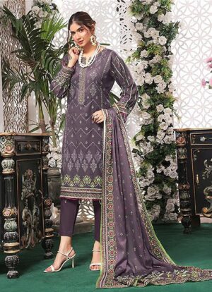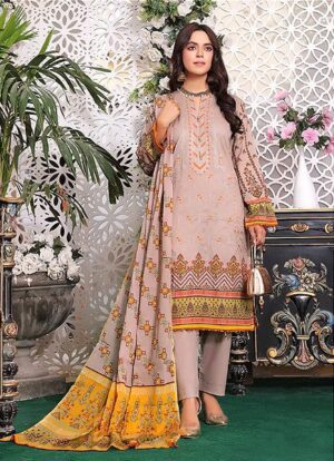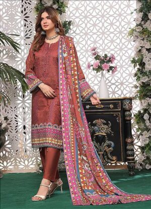 BH Lawn Printed Embroidered Unstitched 3Pcs Suit V4