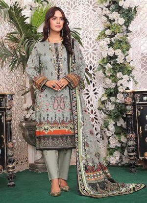 BH Lawn Printed Embroidered Unstitched 3Pcs Suit V6