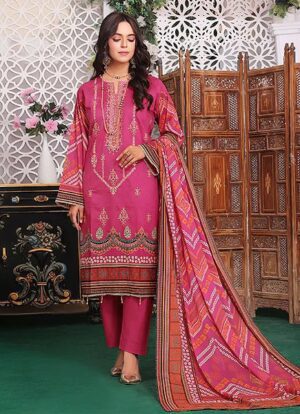 BH Lawn Printed Embroidered Unstitched 3Pcs Suit V2