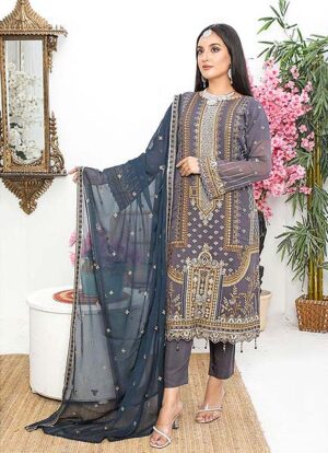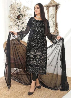 BH Hoorain Luxury Chiffon Embroidered 3Pcs Suit