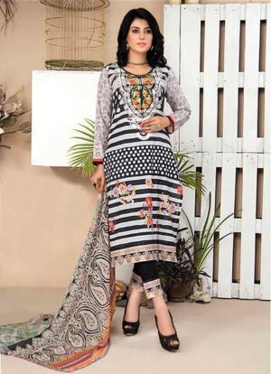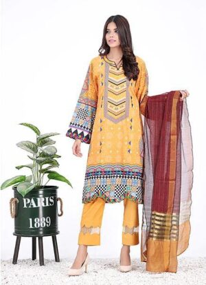 Cambric Digital Embroidered 3 Pcs Unstitched Suit