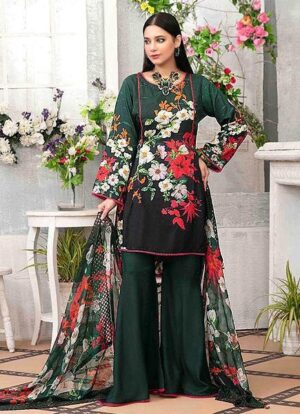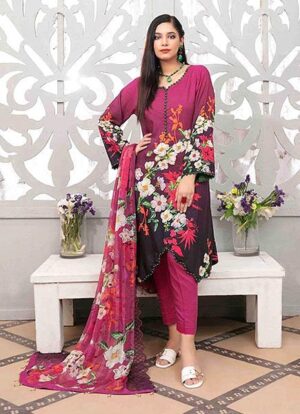 Digital Printed Embroidered 3 Pcs Unstitched Suit